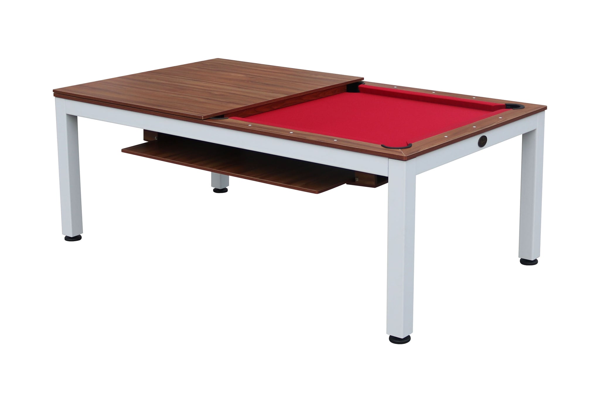 The Glacier is part of the Playcraft EZ Build series of wood bed pool tables. Featuring a sleek, modern design, the Glacier is easy to build and beautiful to look at. The Glacier includes a dining top and arrives fully clothed and ready to assemble - just attach the legs and you will be playing in under an hour! The playfield is constructed of resin infused MDF with a pvc coating. Matched with K66 profile rails for a genuine billiards experience.